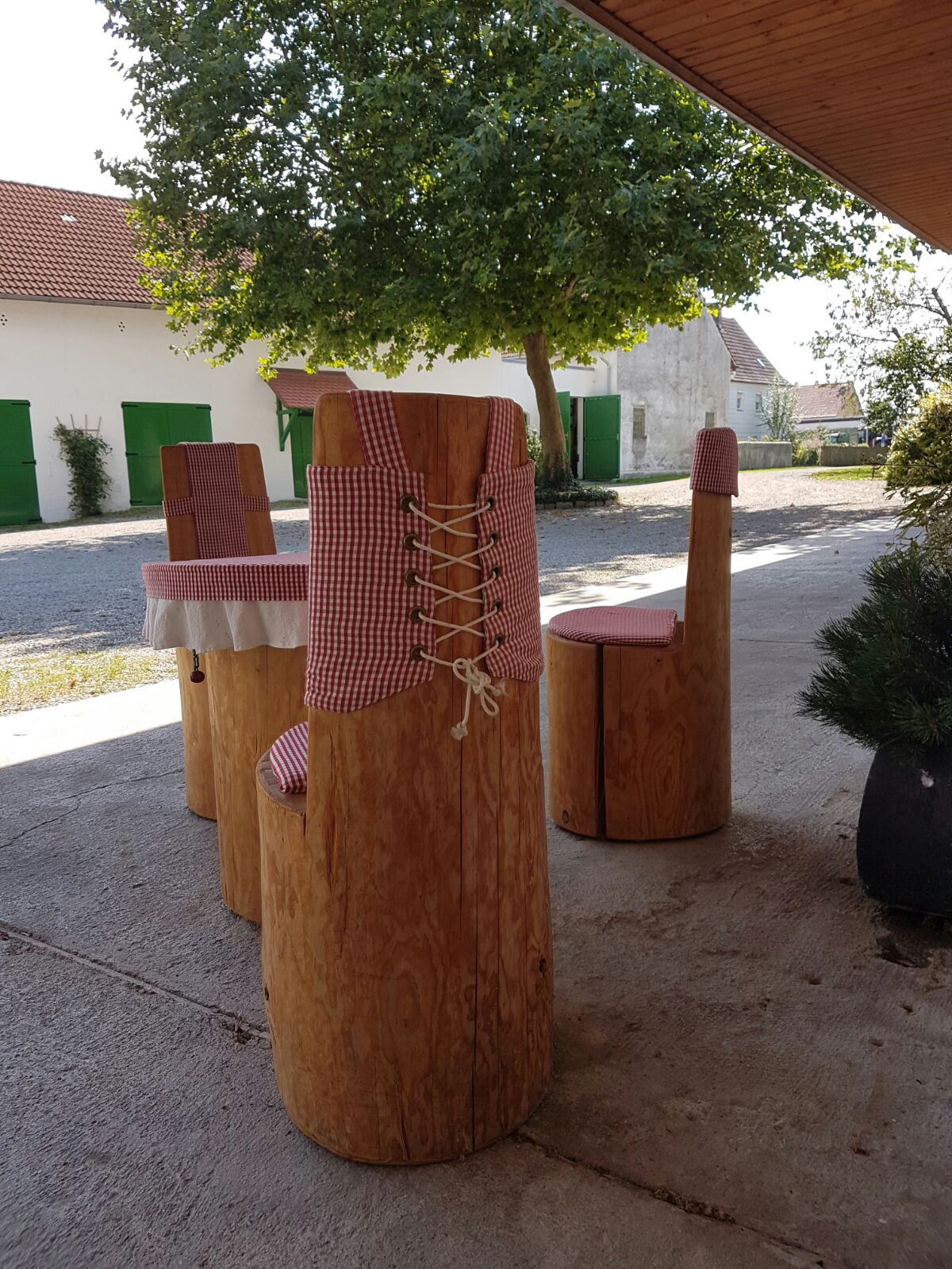 Bevor wir in Schwabing aus allen Nähten platzten, zogen wir im Juni 2013 "auf's Land" nach Fahrenzhausen. Hier entstand durch Umbau unserere großzügige lichtdurchflutete neue Werkstatt. Derzeit befinden sich im Gemeinschaftshof ein Architekturbüro, ein Künstler Atelier, eine Schreinerei, ein Programmierer, ein Fotograf und natürlich unsere Nähwerkstatt.